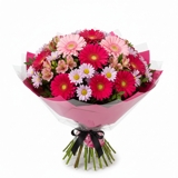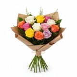 Buquê com 7 rosas cor de rosa sem folhagens, em arranjo clássico e delicado. Ideal para expressar carinho, ternura e elegância com suavidade em cada detalhe das flores.