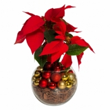 Cesta natalina charmosa com bico-de-papagaio, uvas frescas, ameixas, maçã verde e maçã vermelha na cesta de palha natural. Um presente clássico e elegante para celebrar o Natal com cor, sabor e aquele clima acolhedor da temporada.