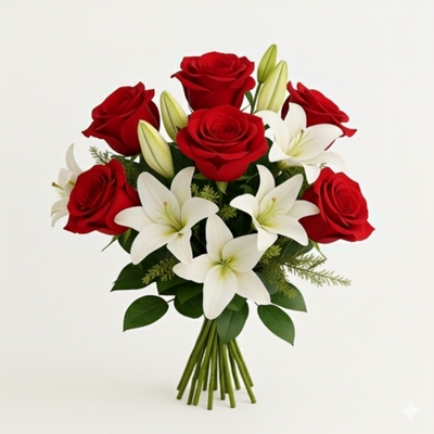 O Encanto dos Lírios revela a harmonia perfeita entre 6 rosas vermelhas e 3 lírios brancos, símbolo de pureza e amor eterno. Um buquê sofisticado que une paixão e serenidade, ideal para celebrar momentos especiais com elegância, emoção e um toque de romance atemporal.