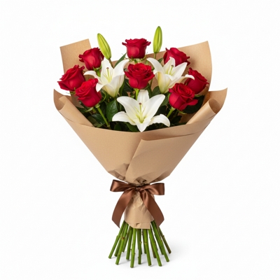 O Encanto dos Lírios revela a harmonia entre 9 rosas vermelhas e 3 lírios brancos, criando uma composição que une intensidade e suavidade com elegância natural. As rosas expressam paixão e sentimento profundo, enquanto os lírios trazem pureza e serenidade ao conjunto. Um buquê sofisticado e equilibrado, ideal para celebrar momentos especiais com emoção, presença e um toque de romance atemporal.
